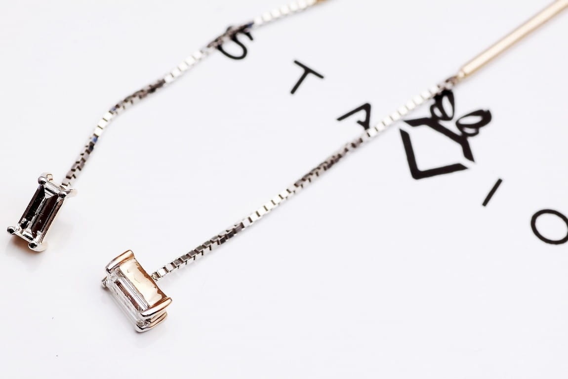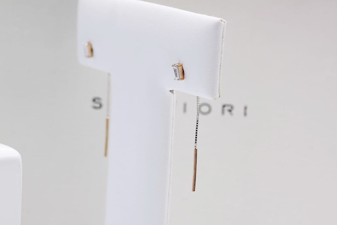 Kolczyki Łańcuszki Różowe Złoto z diamentem Staviori KRD2006 to dzieło sztuki jubilerskiej od marki Staviori. Nasz komplet kolczyków ozdobiony jest diamentami o masie 0,10 ct. o szlifie bagietkowym. Szlif ten sprawia wrażenie światła uwięzionego wewnątrz kamienia. Nadaje on biżuterii delikatnego, a zarazem nowoczesnego charakteru.