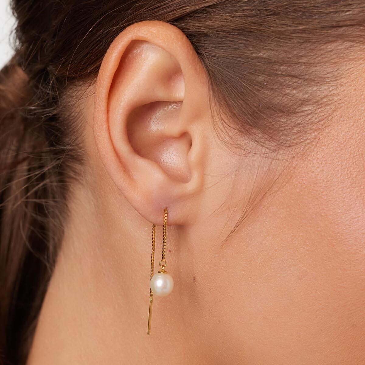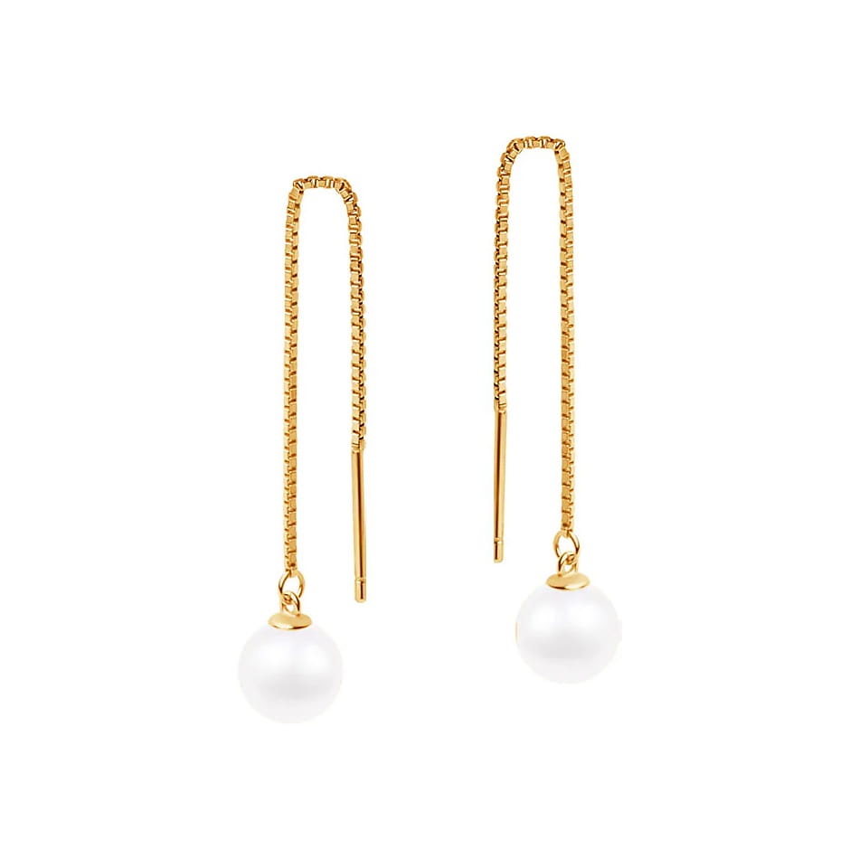 Kolczyki łańcuszki przeciągane z perłą - Luce Marina – pozłacane srebrne