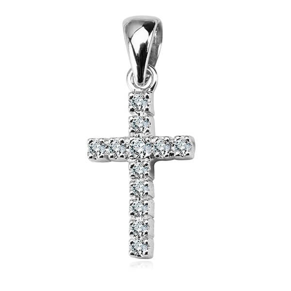 Krzyżyk białe złoto z diamentami - chłodny luksus