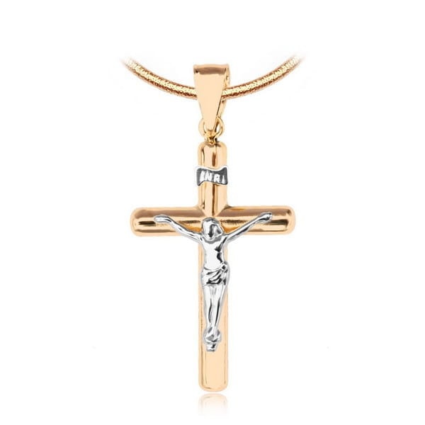 Krzyż powstał z żółtego złota, które gwarantuje mu trwałość i wytrzymałość na uszkodzenia. Za to postać Jezusa, powstała z próby białego złota, która dodaje mu elegancji i klasy. Połączenie tych dwóch kolorów kruszca tworzy wyjątkowy efekt, który z pewnością przyciągnie spojrzenia.