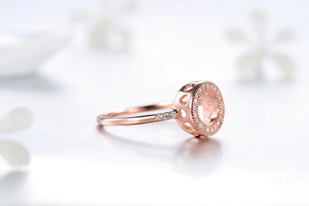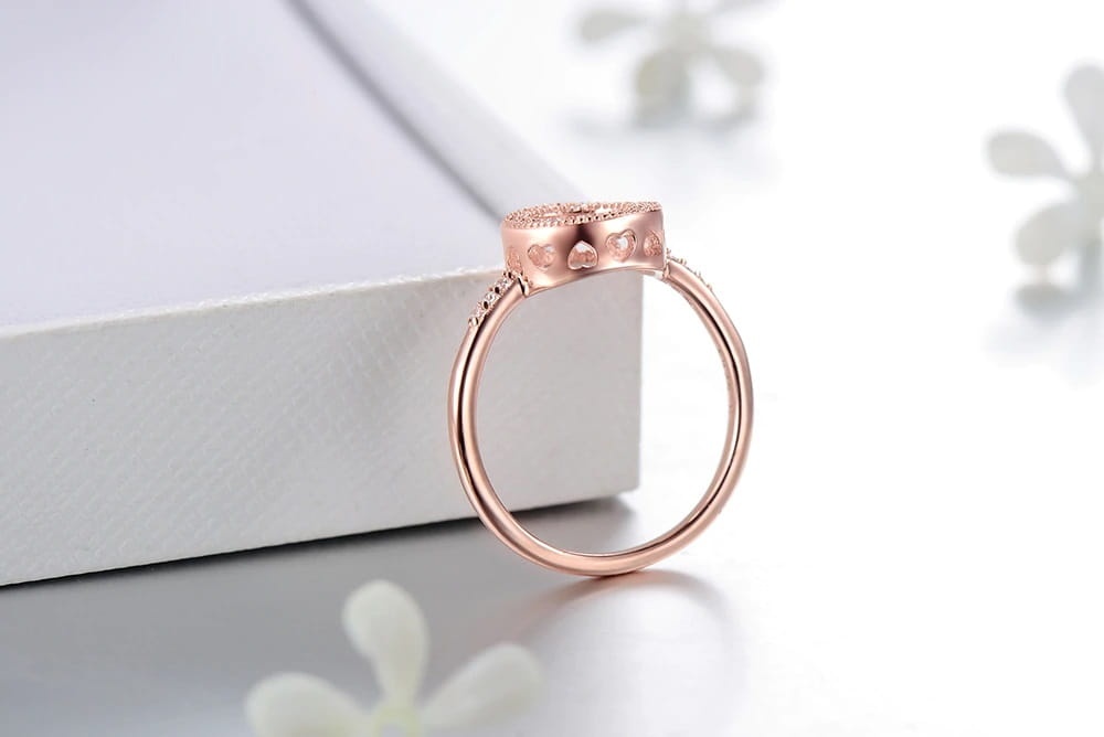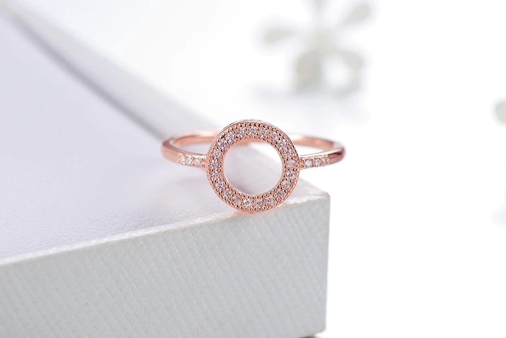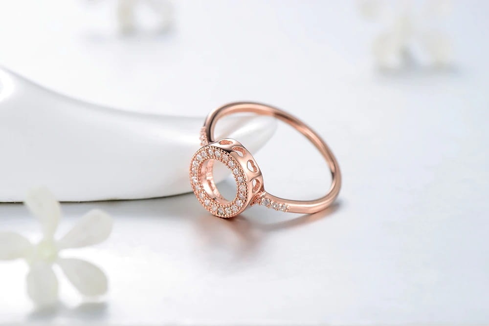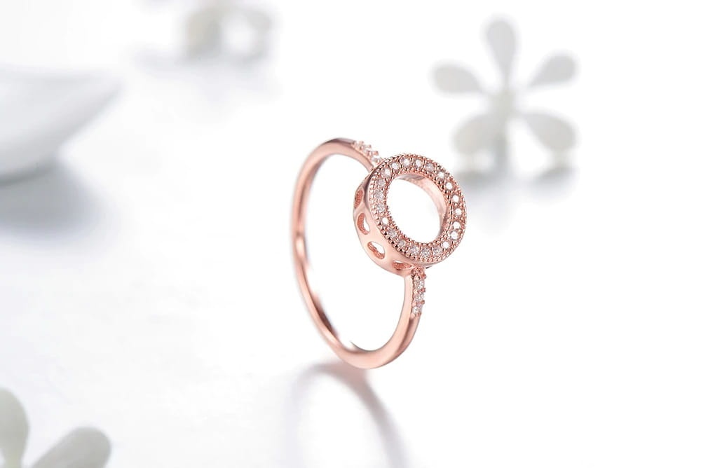 Staviori Pierścionek. Cyrkonia. Srebro 0,925. pokryte różowym złotem Średnica 9,5 mm.