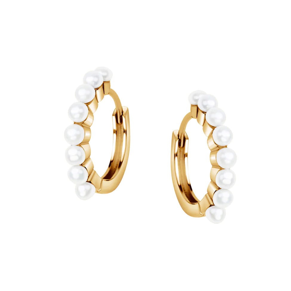 Pozłacane Kolczyki Kółka z Naturalnymi Perłami