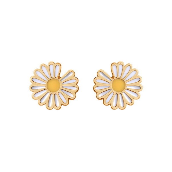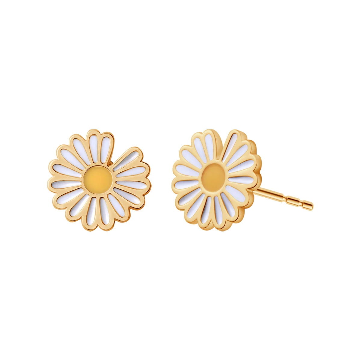 Pozłacane Srebrne Kolczyki Stokrotki – Emalia