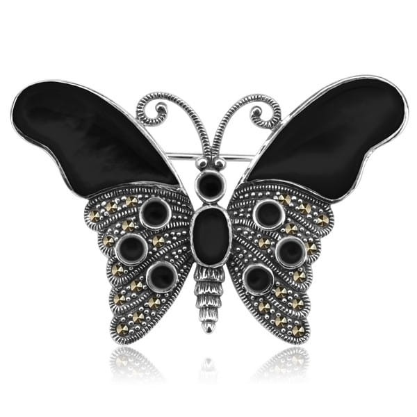 Srebrna broszka Motyl z Onyksem - kunsztowny dodatek każdej stylizacji