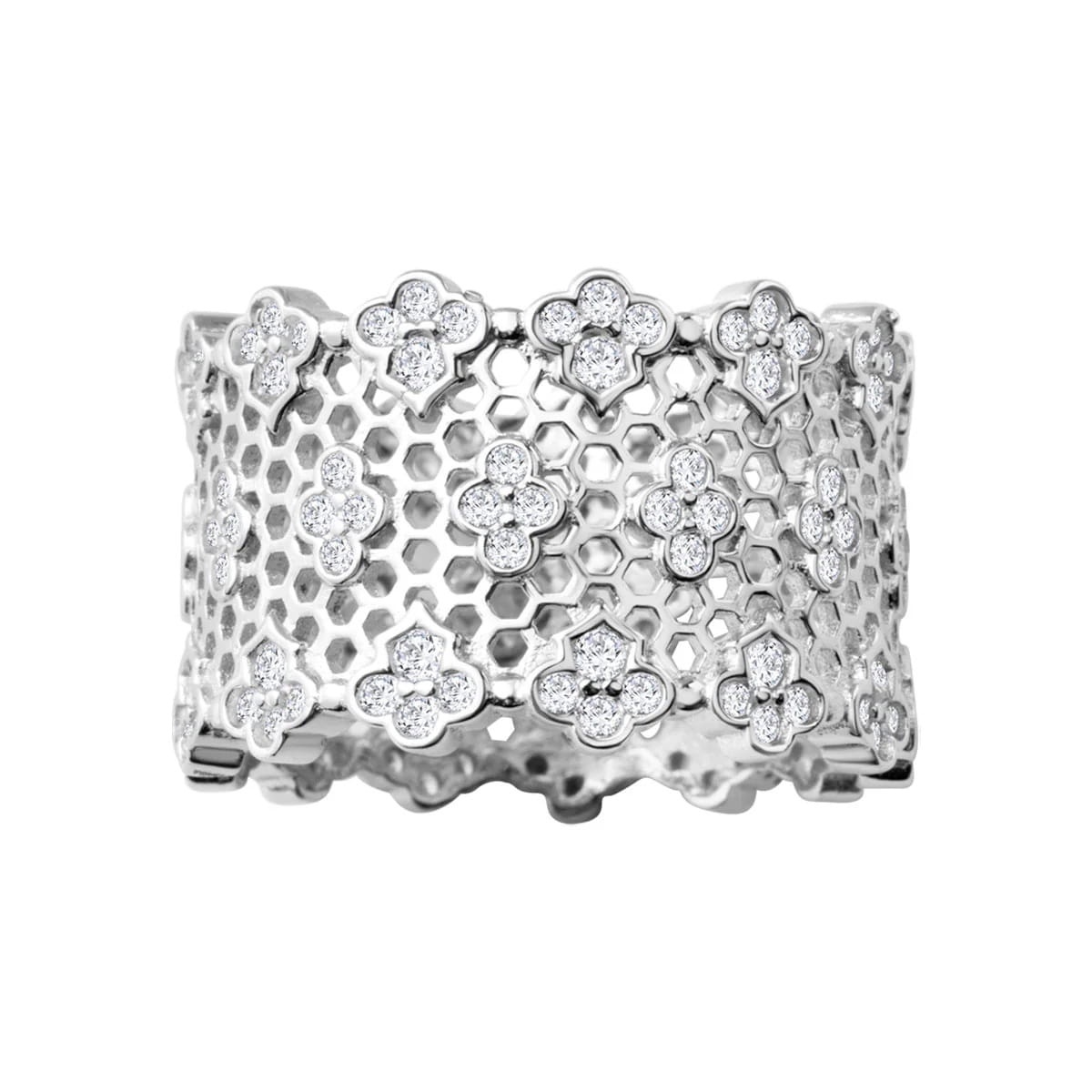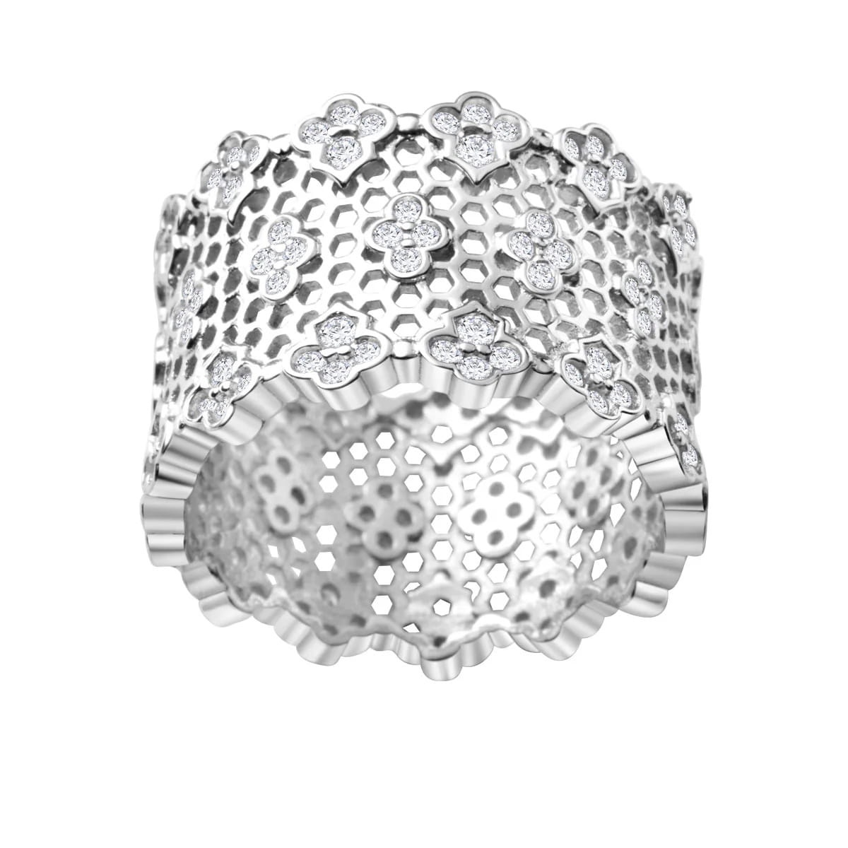 Srebrny Pierścionek z Cyrkoniami Szeroki