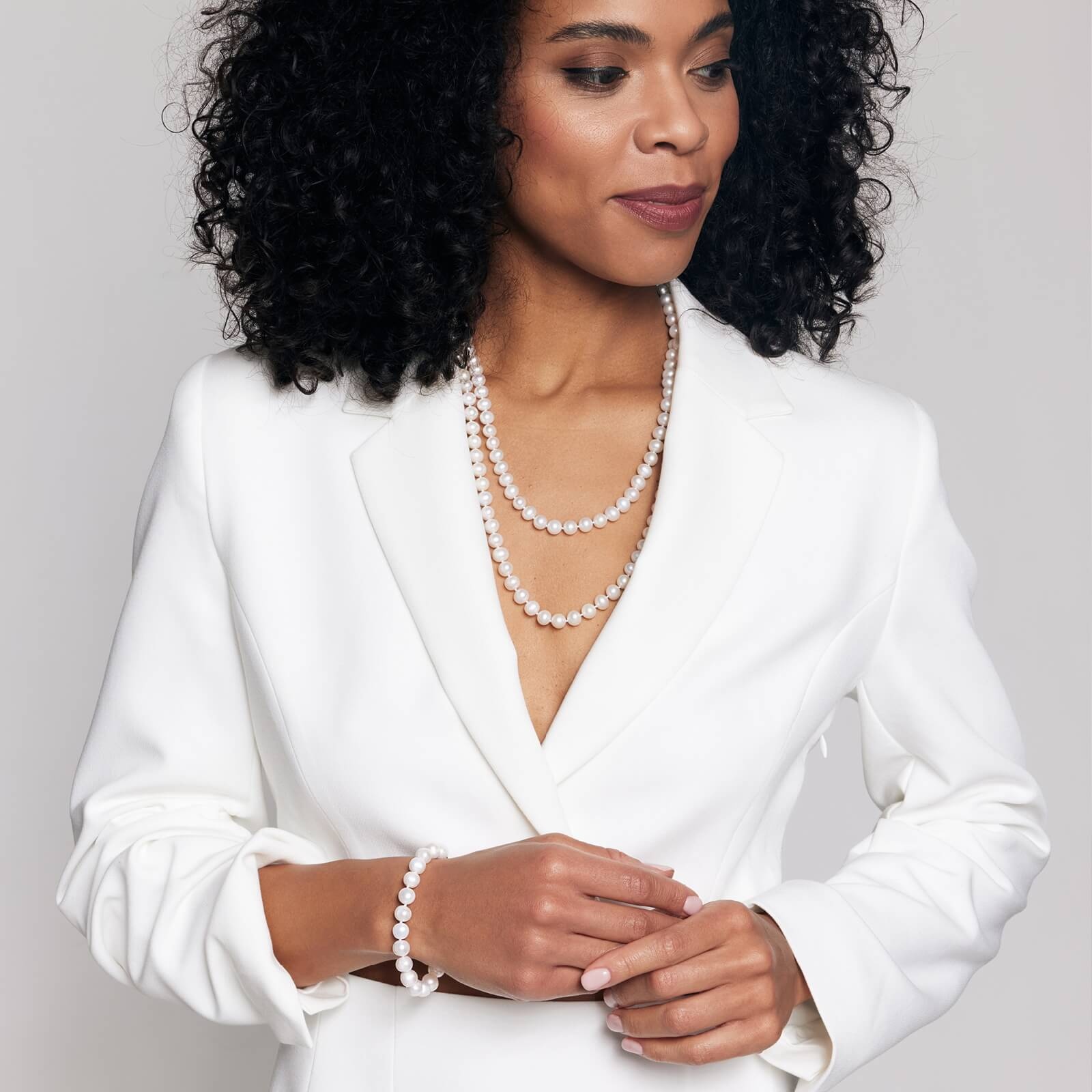 Perły mają średnicę 8-9 mm i zostały zakwalifikowane do Klasy A. Całości dopełnia eleganckie zapięcie z żółtego złota próby 585.