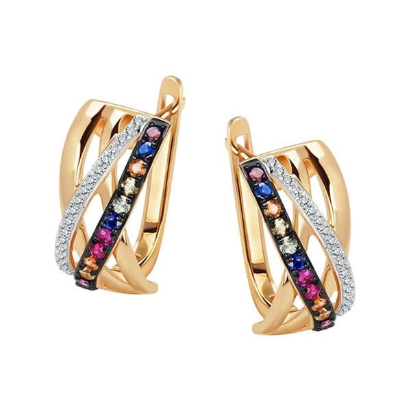 Złote Kolczyki z Ametystami, Rubinami, Szafirami, Diamentami