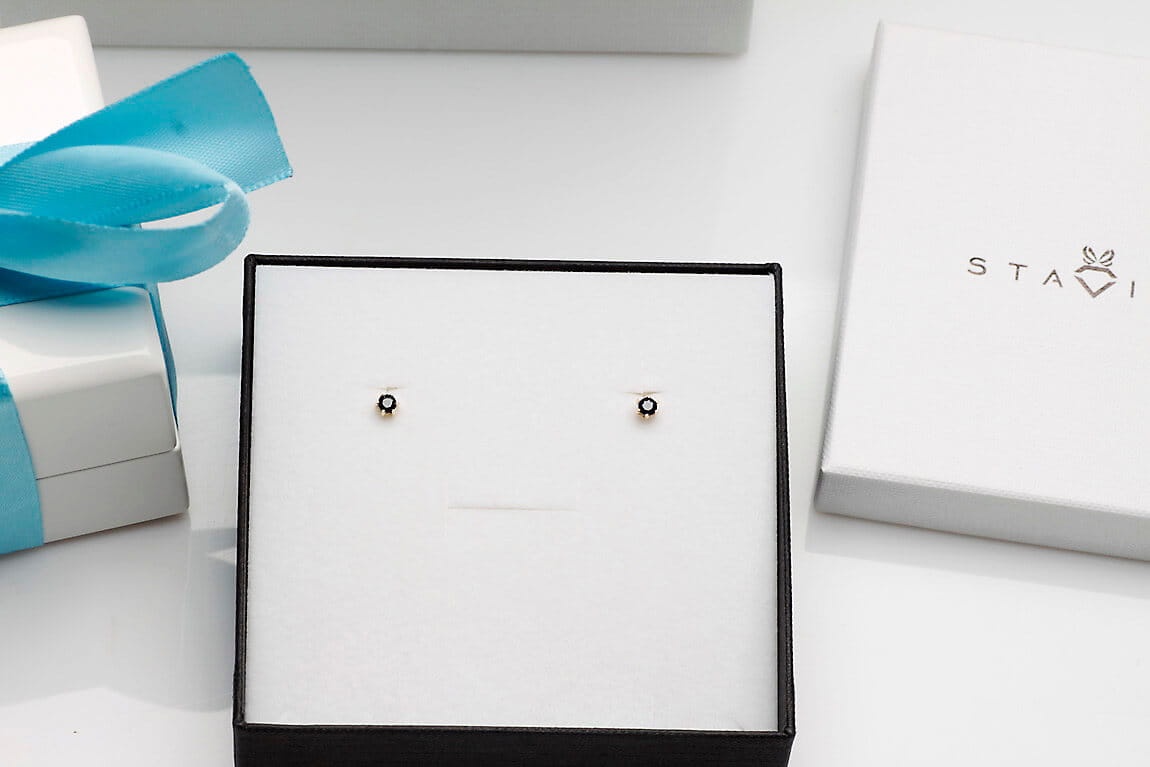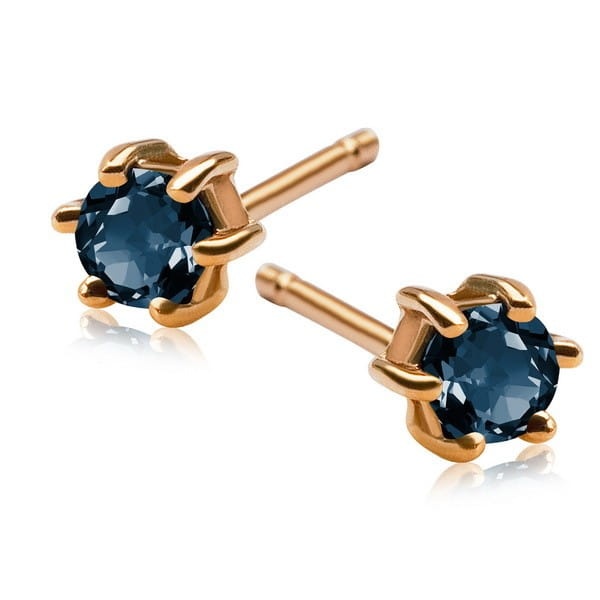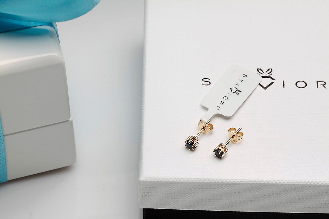 2 Szafiry, masa 0,30 ct.. Żółte Złoto 0,585. Średnica 4 mm.