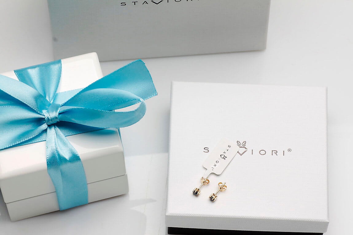 Prezentowany model został ozdobiony 2 szafirami o łącznej masie 0,3 ct.