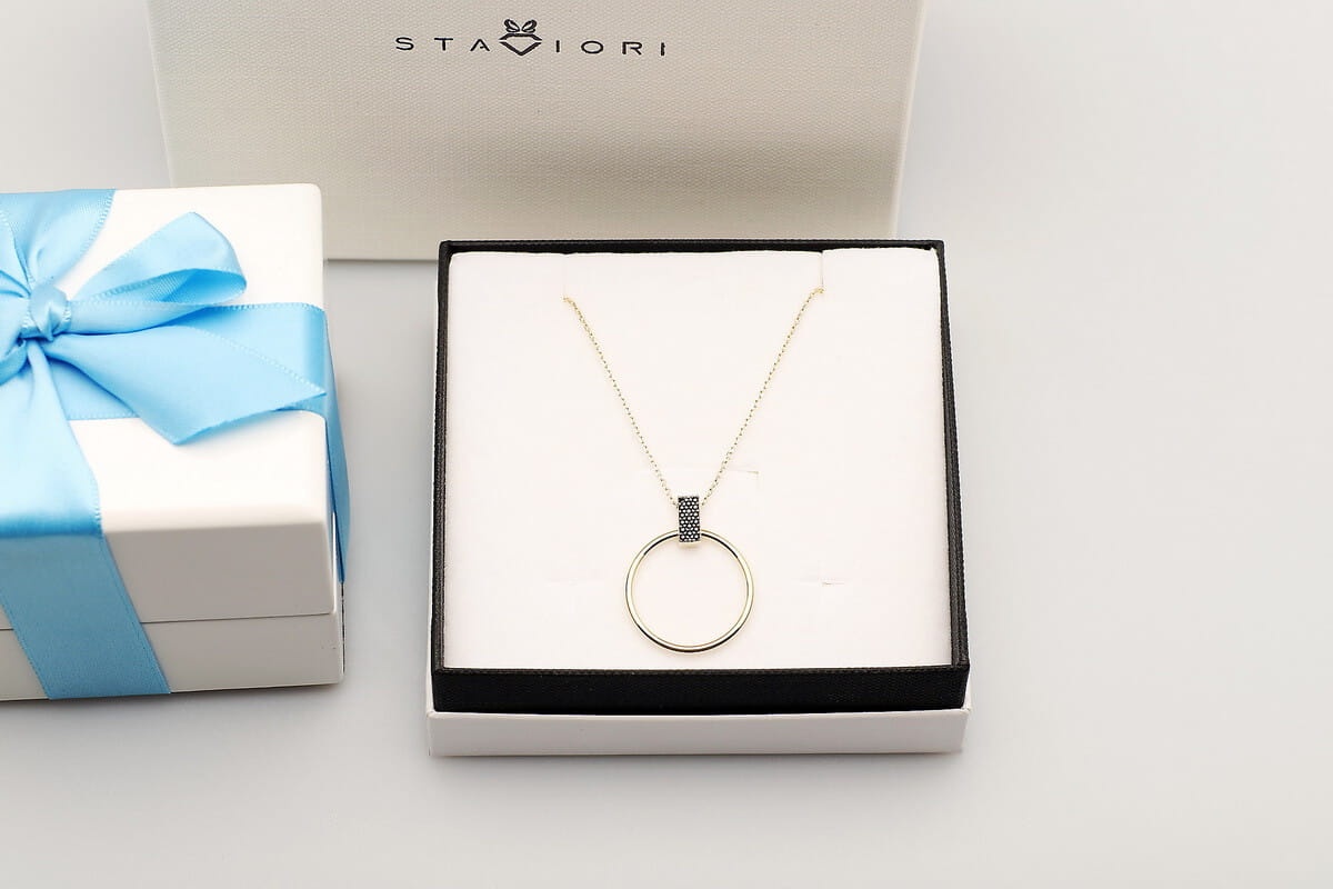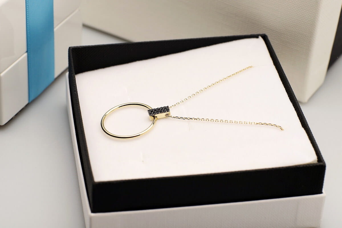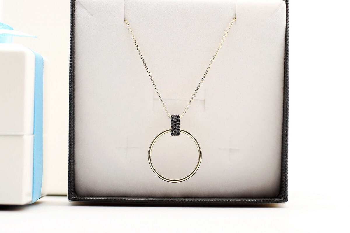 Dobierz do zestawu Złote Kolczyki Koła z Czarnymi Cyrkoniami i Stwórz Oszałamiający komplet biżuterii.