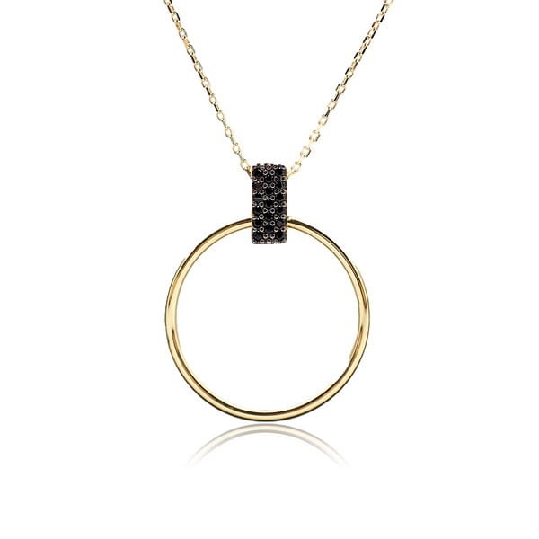 Złoty Naszyjnik 50 cm - Zawieszką Koło i Czarnymi Cyrkoniami