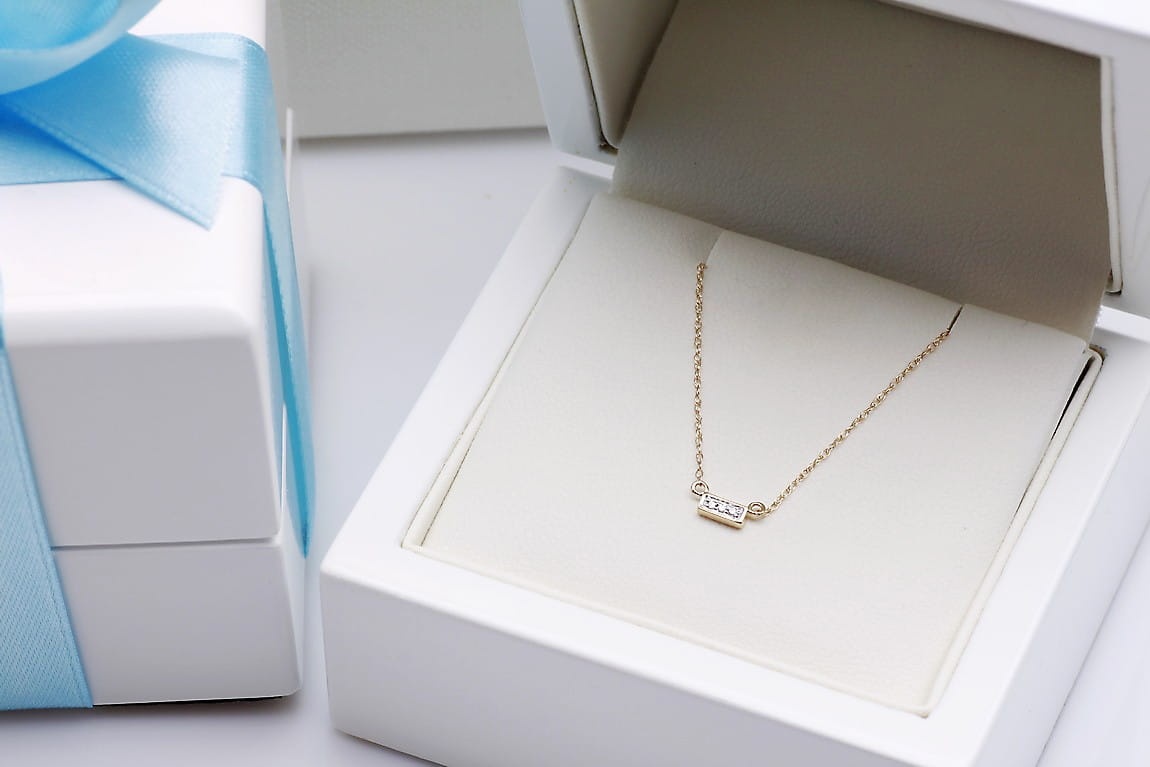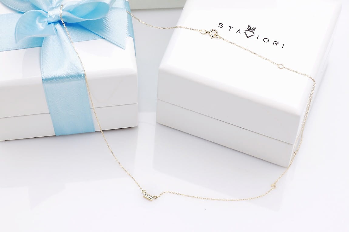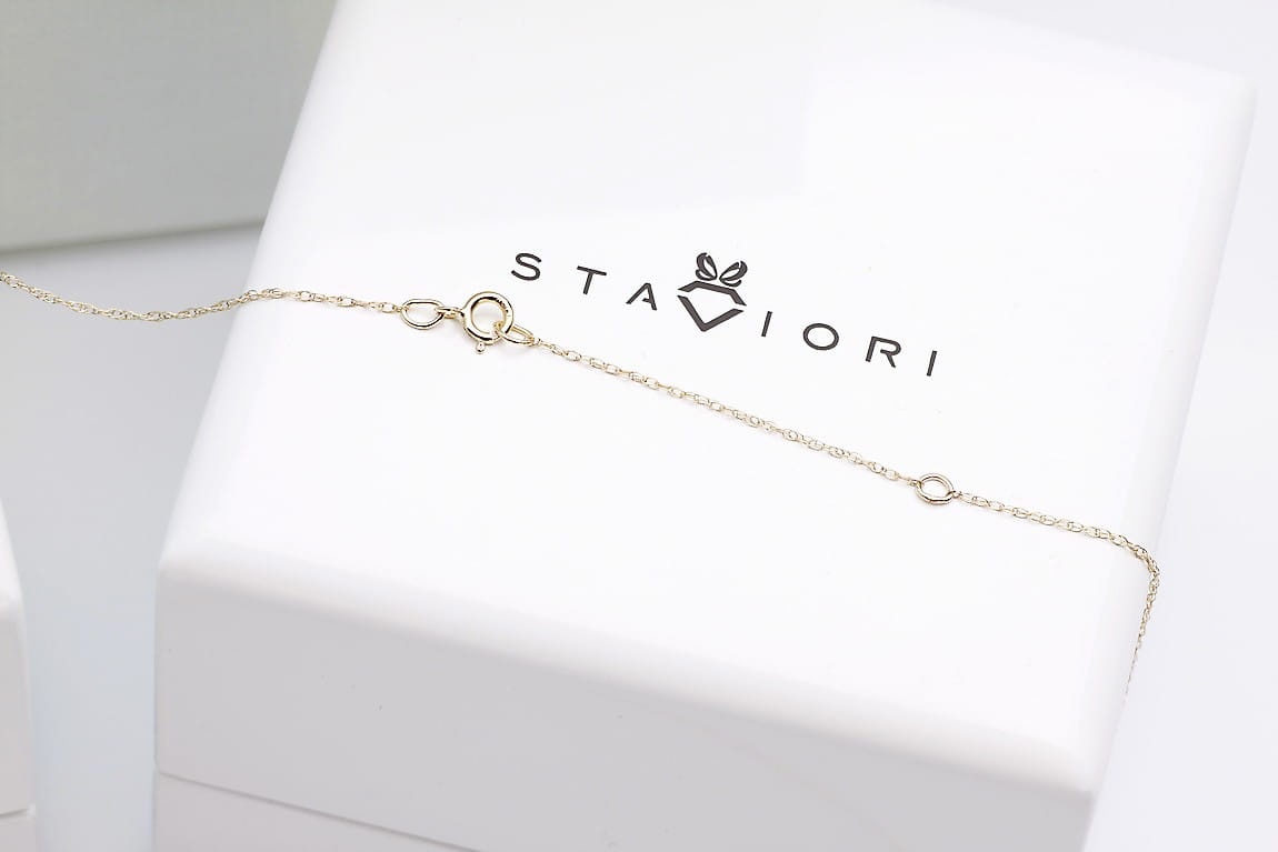 Staviori Naszyjnik 43cm. 3 Diamenty, szlif achtkant, masa 0,015 ct., barwa H, czystość I1-I2. Żółte Złoto 0,585. Szerokość 5 mm. Długość regulowana 40cm lub 43cm.