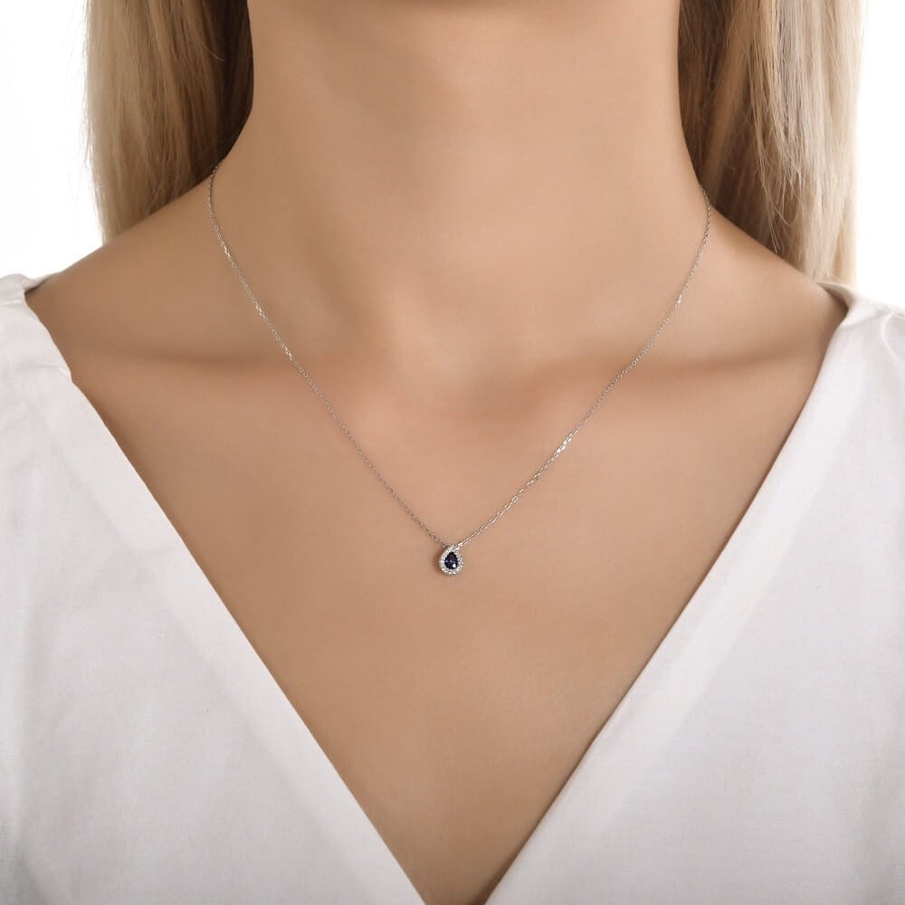 Złoty Naszyjnik z Szafirem 0,15 ct i Diamentami NBD6090S