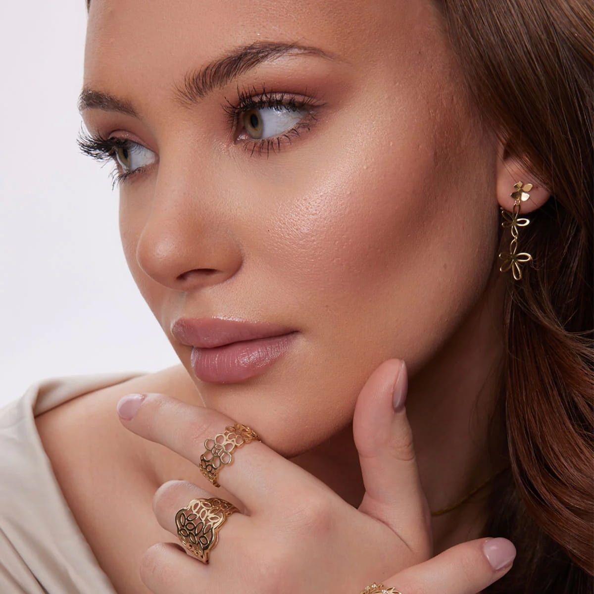 Złoty Pierścionek Kwiat Ażurowy