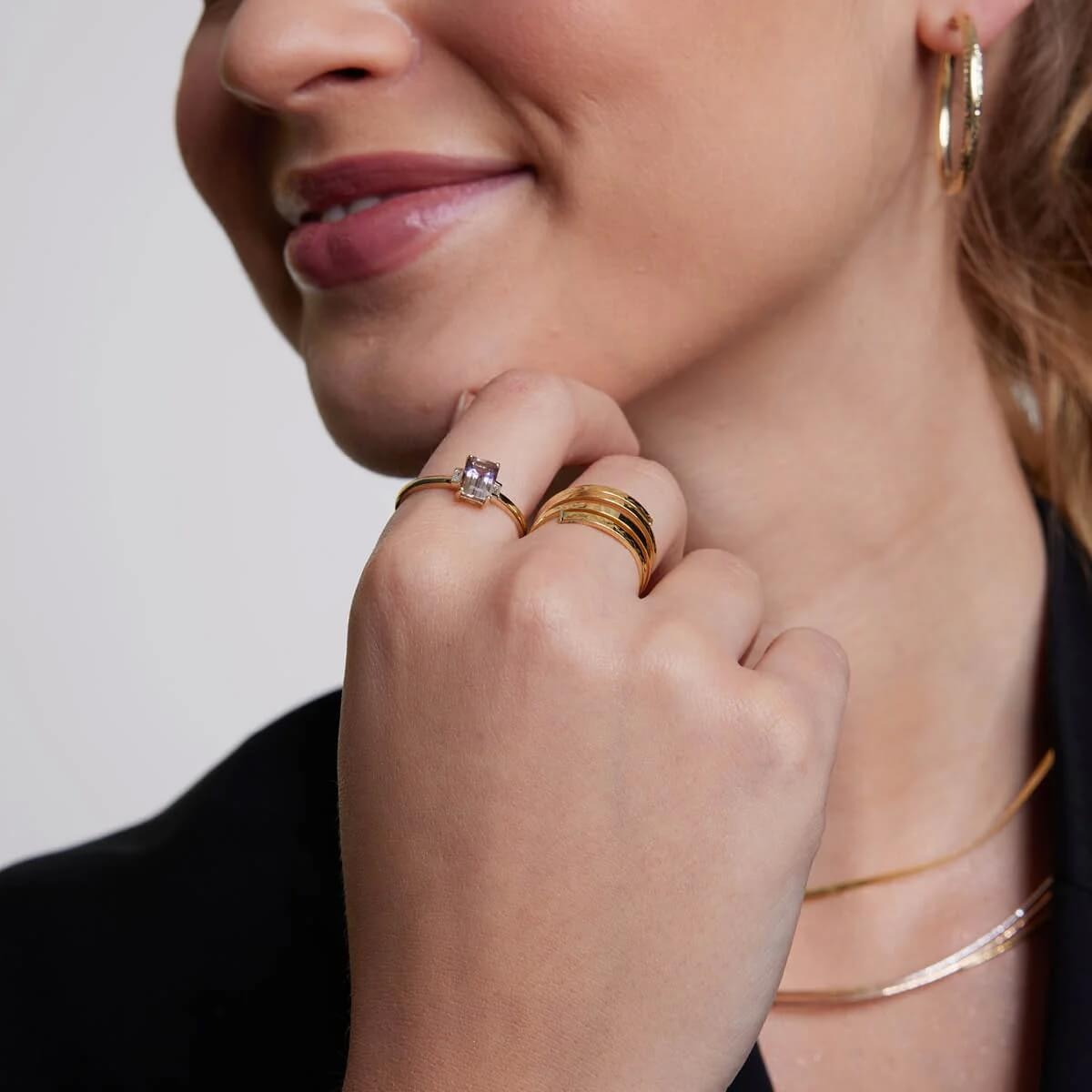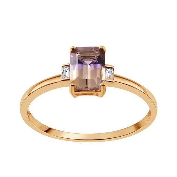 Złoty Pierścionek z Ametrynem i Diamentami