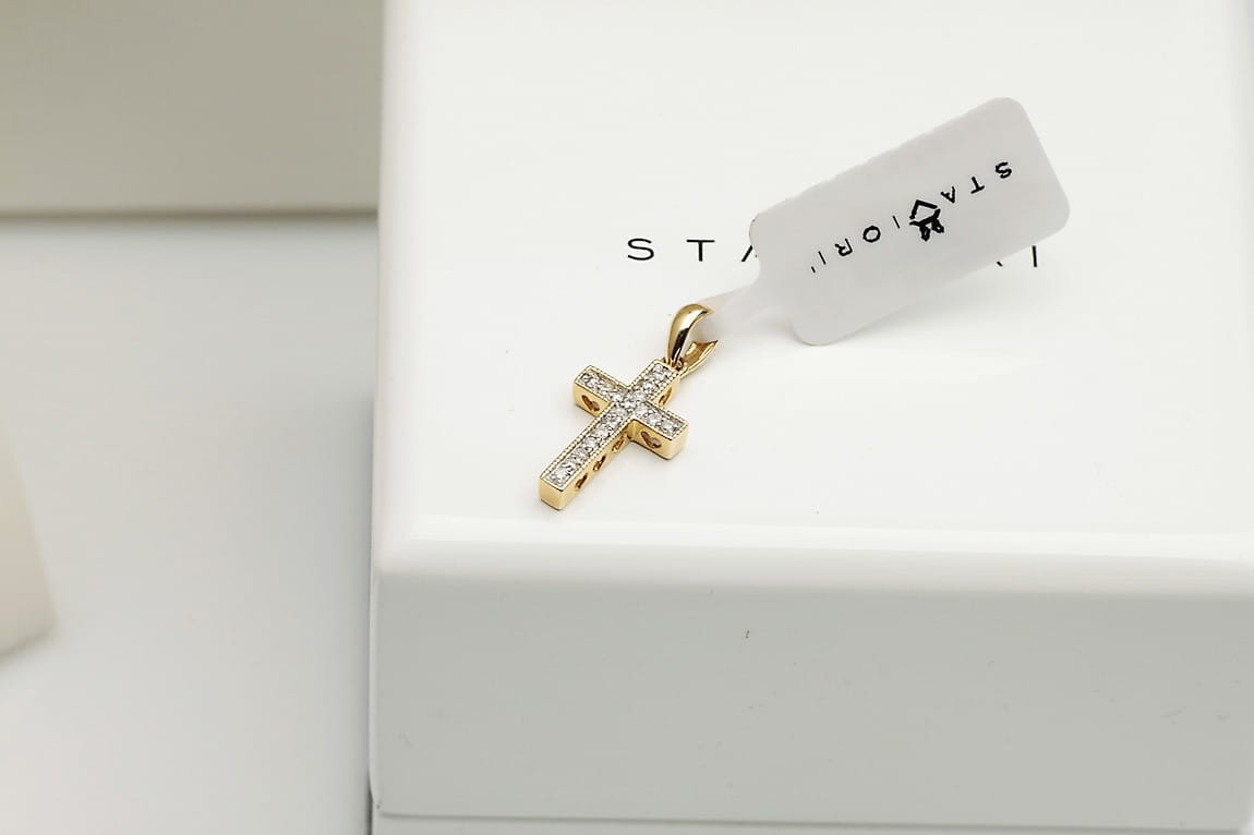 Złoty krzyżyk zdobiony diamentami