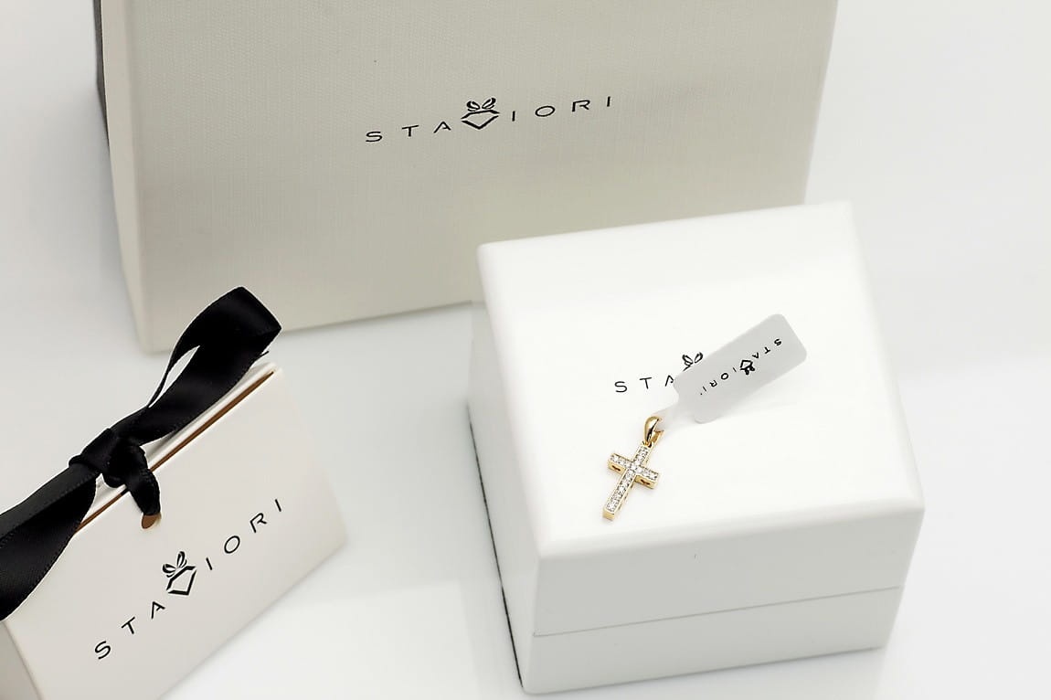 Złoty krzyżyk zdobiony diamentami to biżuteria dla osób, które cenią sobie wysoką jakość wykonania, elegancję i oryginalny styl. W przepiękny sposób wyrazisz swoją wiarę oraz miłość do Boga.